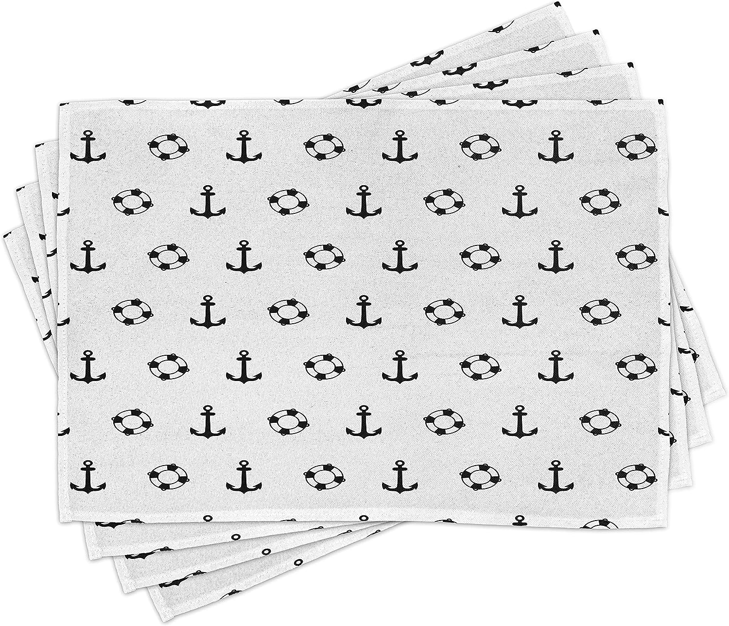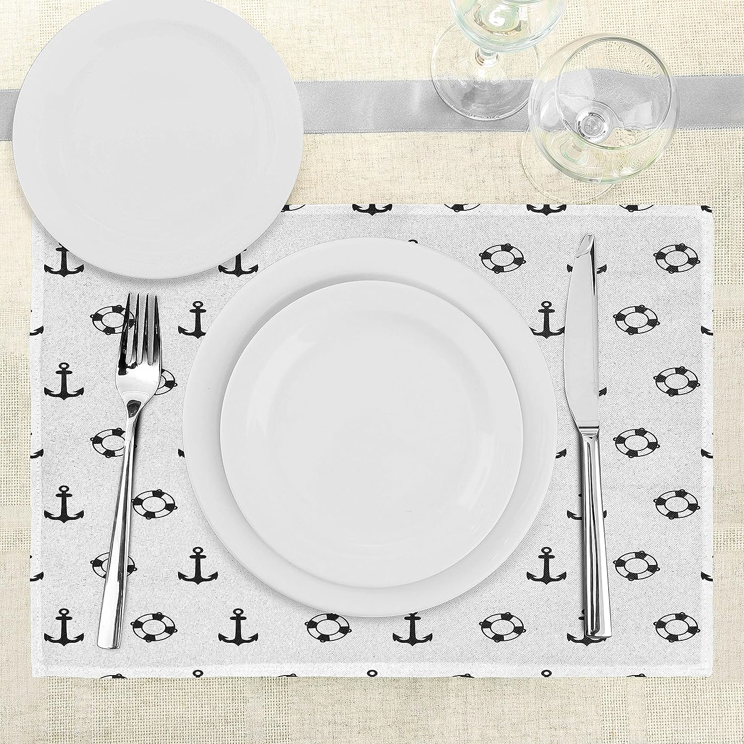 ABAKUHAUS Nautisch Platzmatten, Anker und Lifebuoys, Waschbare Stoff Esszimmer Küche Tischdekorations Digitaldruck, Weiß