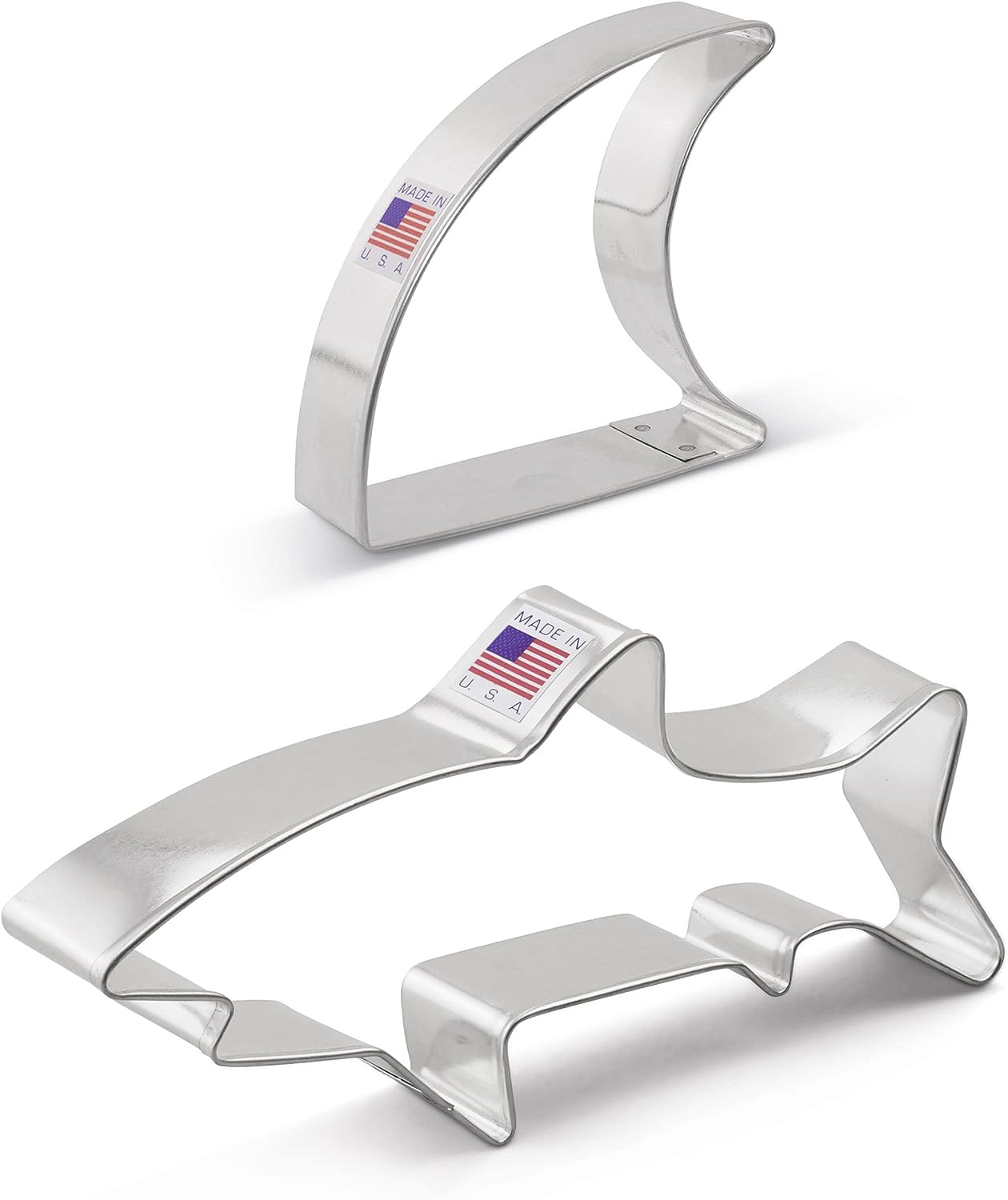 Ann Clark Cookie Cutters 2-teiliges Ausstechformen-Set Hai mit Rezeptbroschüre Hai und Flosse