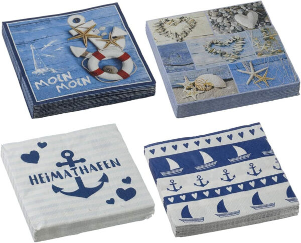 Diese schönen Servietten aus Papier sind ca. 33 x 33 cm groß. Wunderschöne, maritime Motive zieren diese Dekoservietten und es entsteht ein lebendiger Eindruck und Ihr Tisch sieht sehr dekorativ aus und schützt zugleich. Die Untersetzer sind für ein modernes Zuhause ein echter Blickfang.