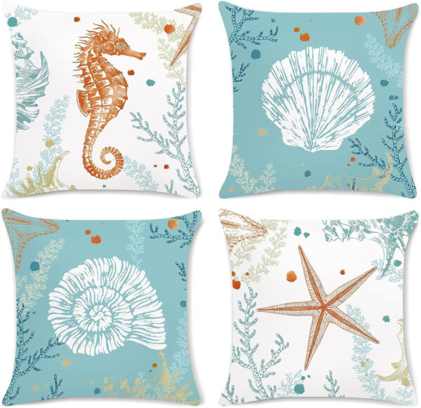Be the first to review “Bonhause 4er Set Kissenbezüge Ozean Strand 45 x 45 cm Seepferdchen Seestern Küsten Blau Samt Soft Dekorative Kissenhülle”