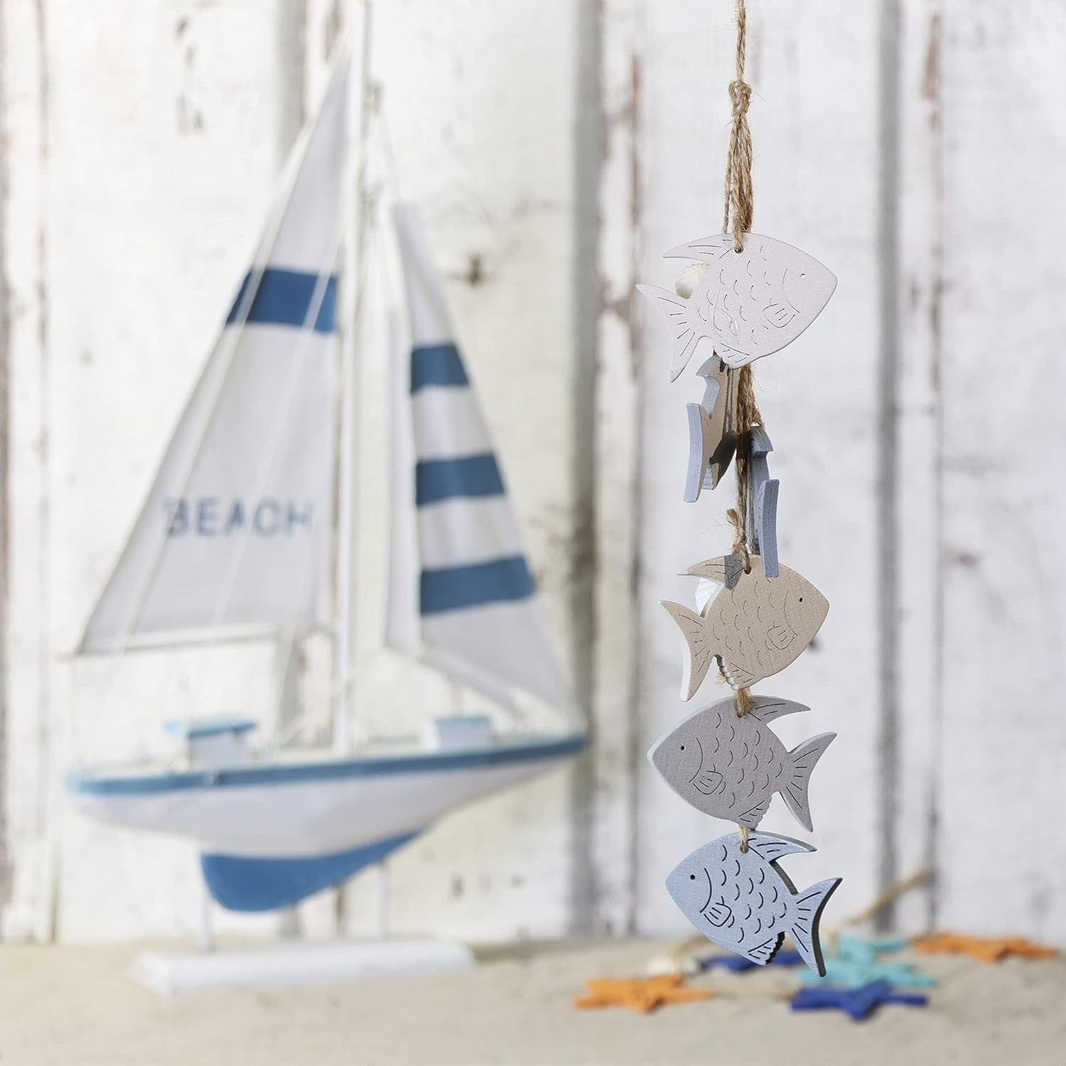 Die maritime Dekoration kann dank einer praktischen Schnur ganz schnell und einfach aufgehängt werden!
