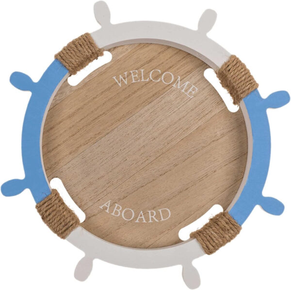 Dieses schöne Tablett aus Holz in Form eines Steuerrads mit Tau-Applikationen bringt maritimes Flair in jede Wohnung. Das Serviertablett ist gut verarbeitet, farblich hochwertig gestaltet und ist auch unbeladen ein schöner Accessoire.