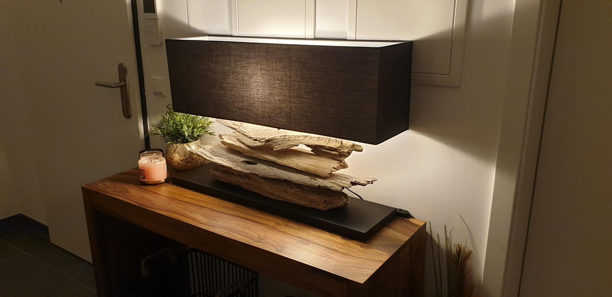durch das handverlesene Treibholz ist jede Tischleuchte ein Unikat