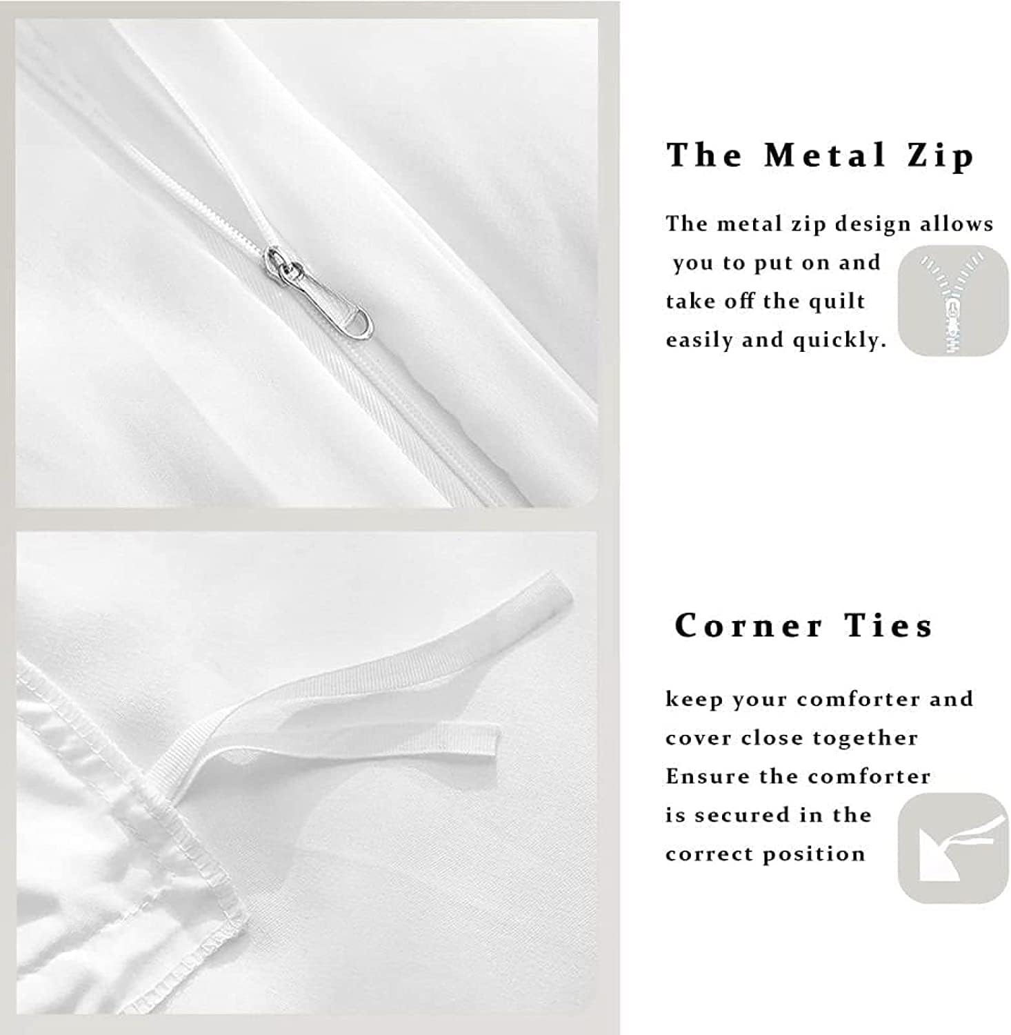 Der Bettbezug ist mit 4 Eckbändern versehen, um die Bettdecke in Position zu halten