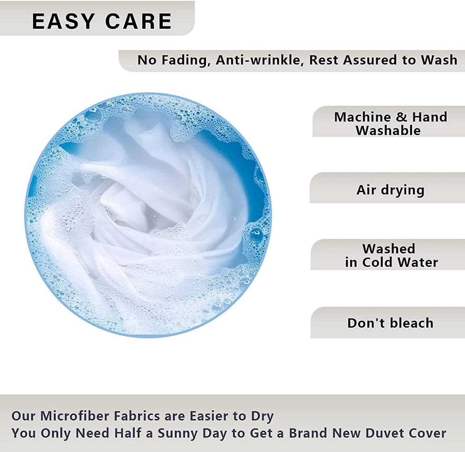 Maschinen waschbar und Trockner geeignet, Knitterfrei und Schrumpffrei. Unsere Bettbezüge werden mit jedem Waschen noch besser