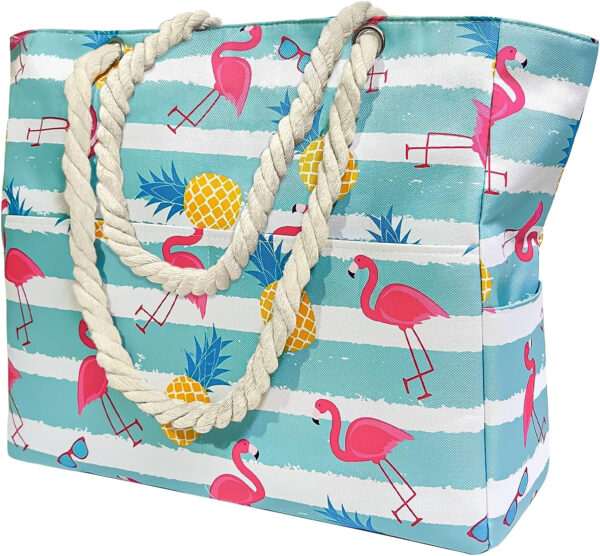 Die beiden Haupttaschen der strandtasche sind mit hochwertigen und glatten Reißverschlüssen ausgestattet, um den Inhalt der Strandtasche besser zu schützen. |