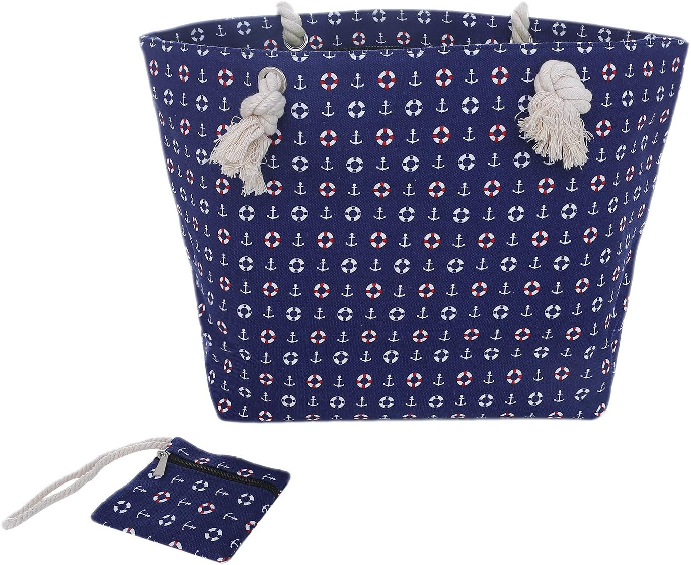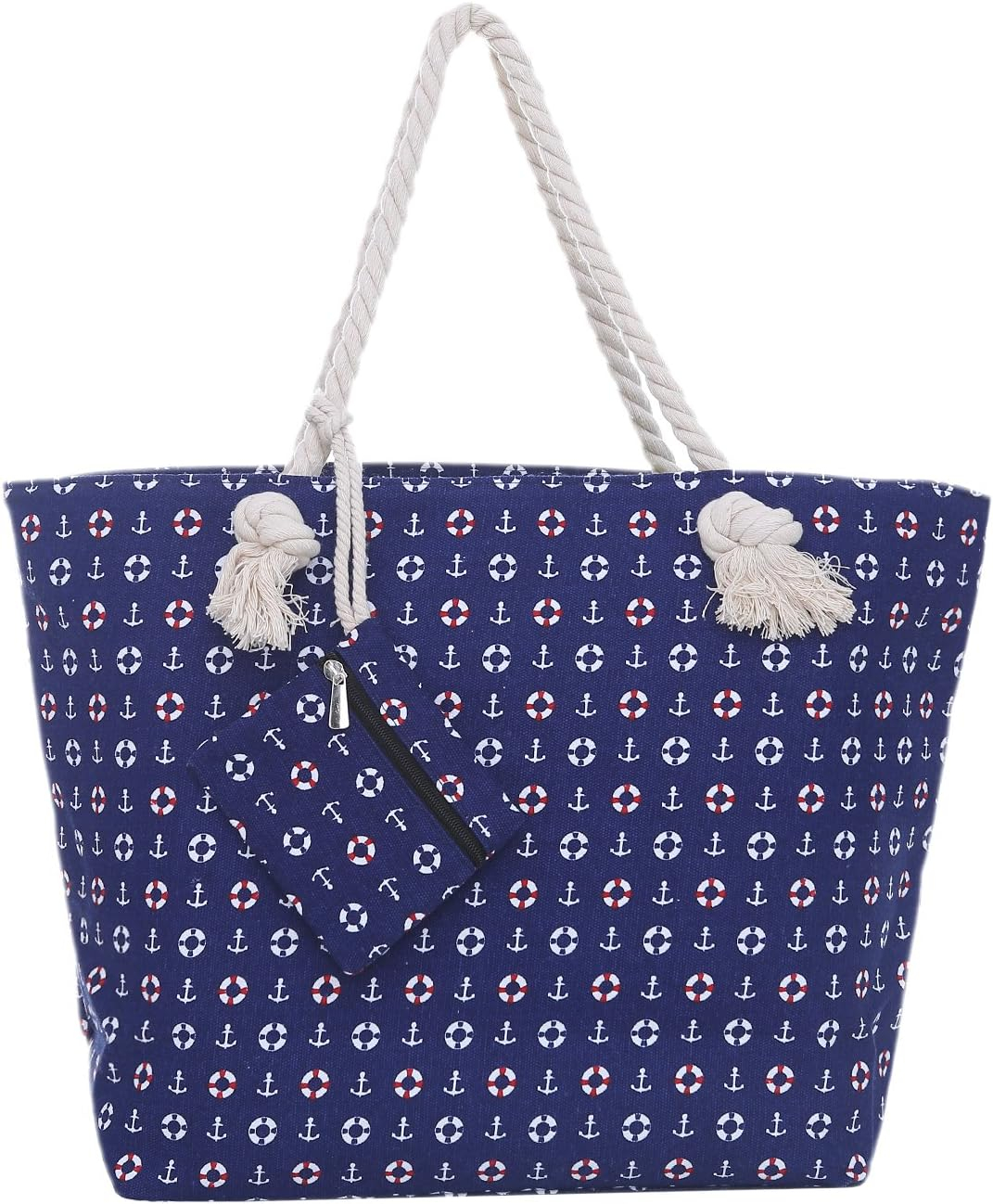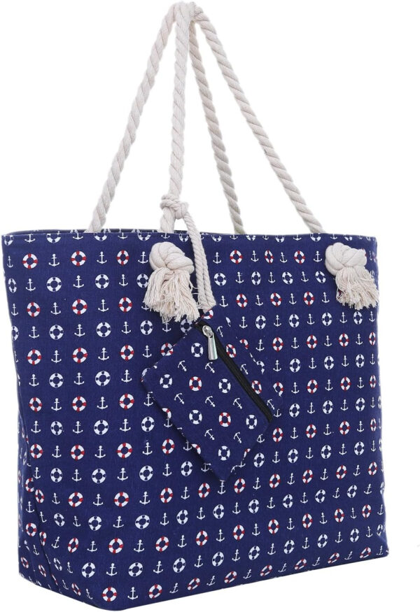 Große Strandtasche mit Reißverschluss 58 x 38 x 18 cm maritimes Design Anker beige blau Shopper Schultertasche Yacht Style