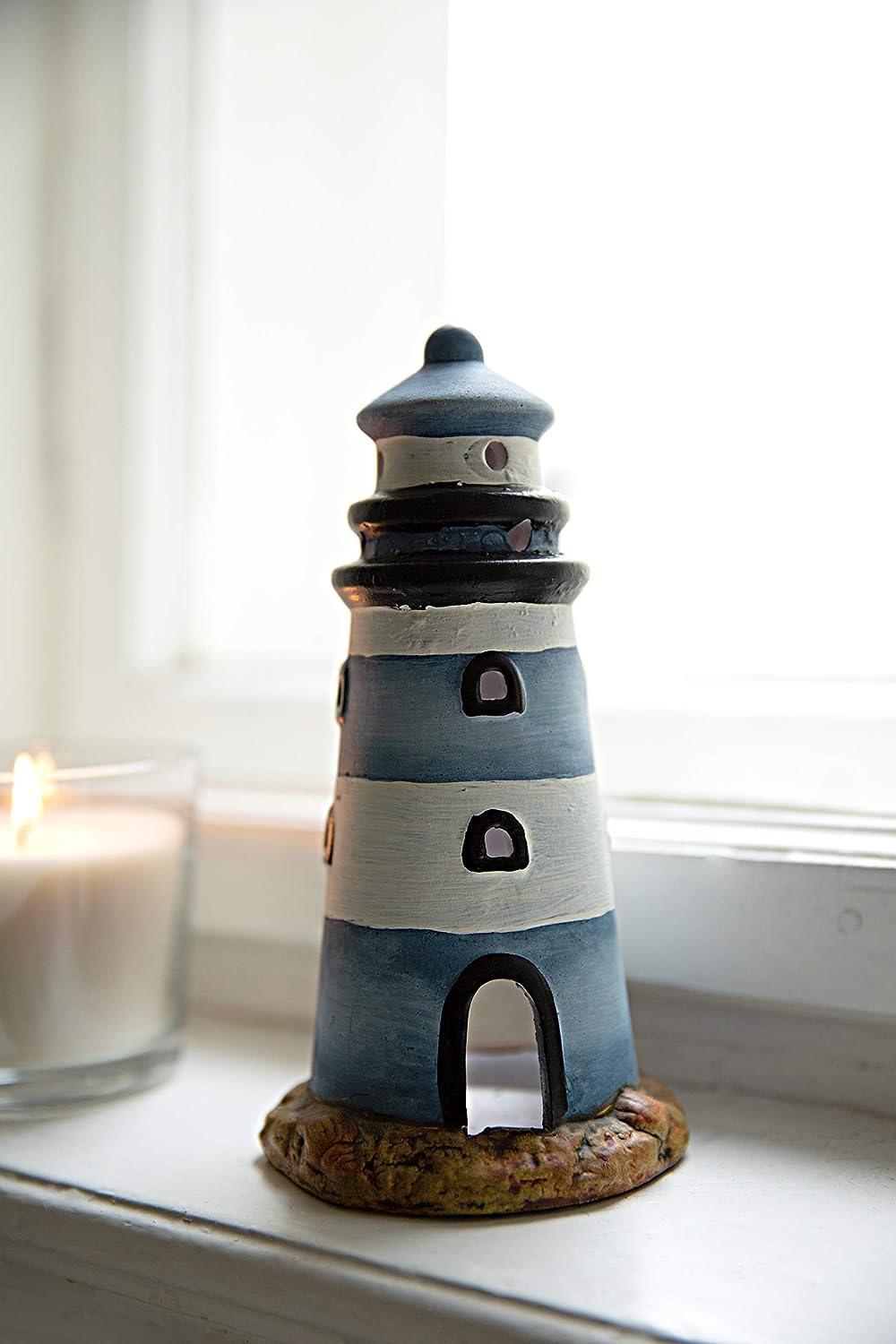 • MATERIAL & FARBEN: Durch die Verwendung von Keramik und maritimen, kühlen Farben wie Stahlblau und Weiß ist der Leuchtturm ein echter Eyecatcher. Jetzt nur noch ein Teelicht unten reinstellen und Sie haben eine schöne Lichtquelle. DIe ideale Deko für das Wohnzimmer, die Kommode oder das Schlafzimmer