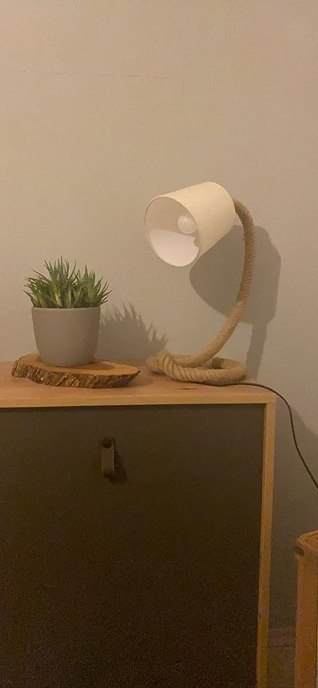 Es ist eine schöne Lampe. Einziges Manko ist, dass das Kabel vorn rauskommt und der Schirm auch nach vorne steht und das Stromkabel quer über den Nachtschrank läuft.
