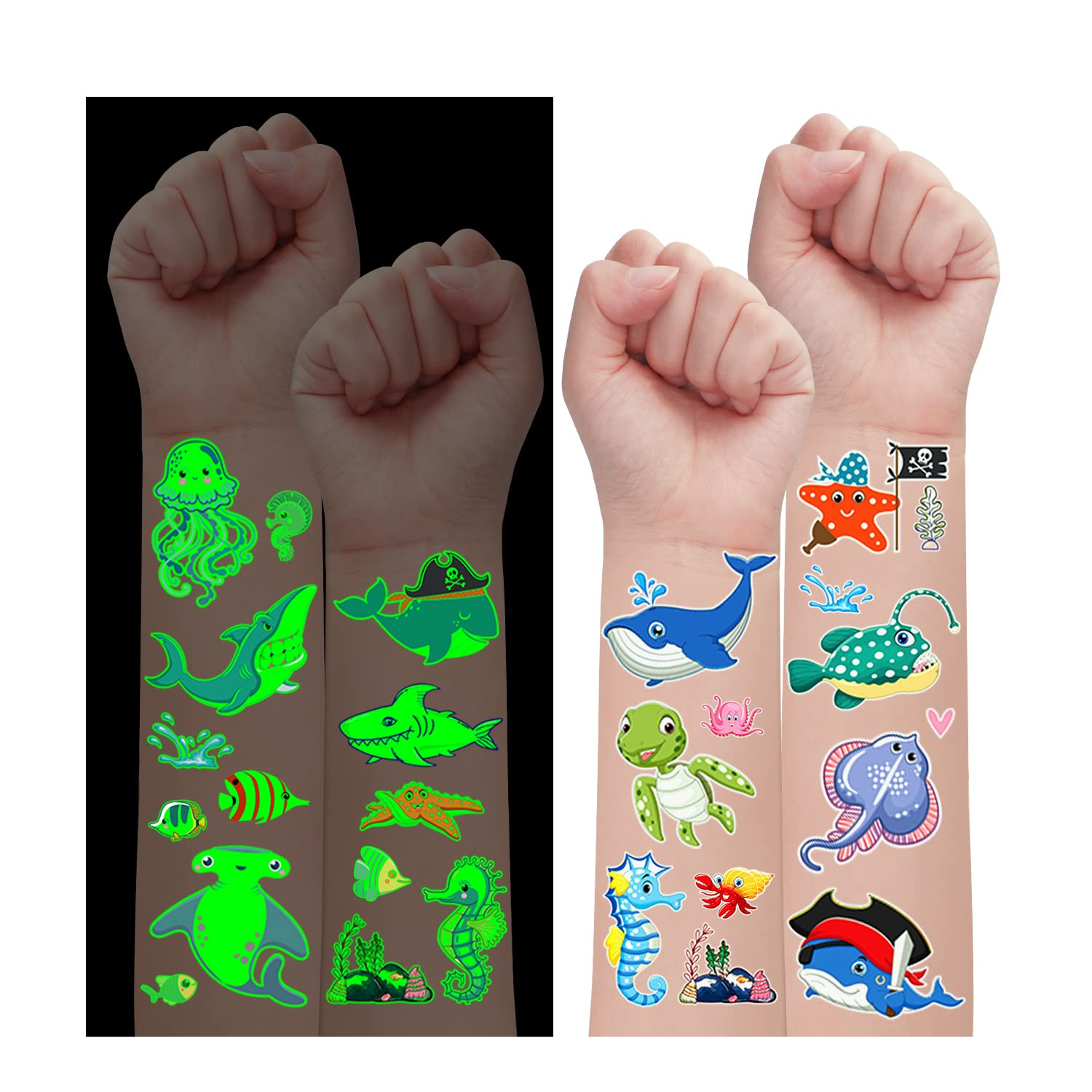 1 review for Leesgel Tattoo Kinder Jungen, 140 Stück Leucht Kindertattoos Aufkleber Kinder Meerestiere Hai Sticker, Unter dem Meer Deko