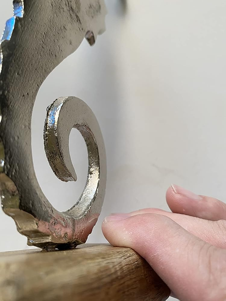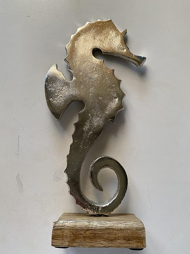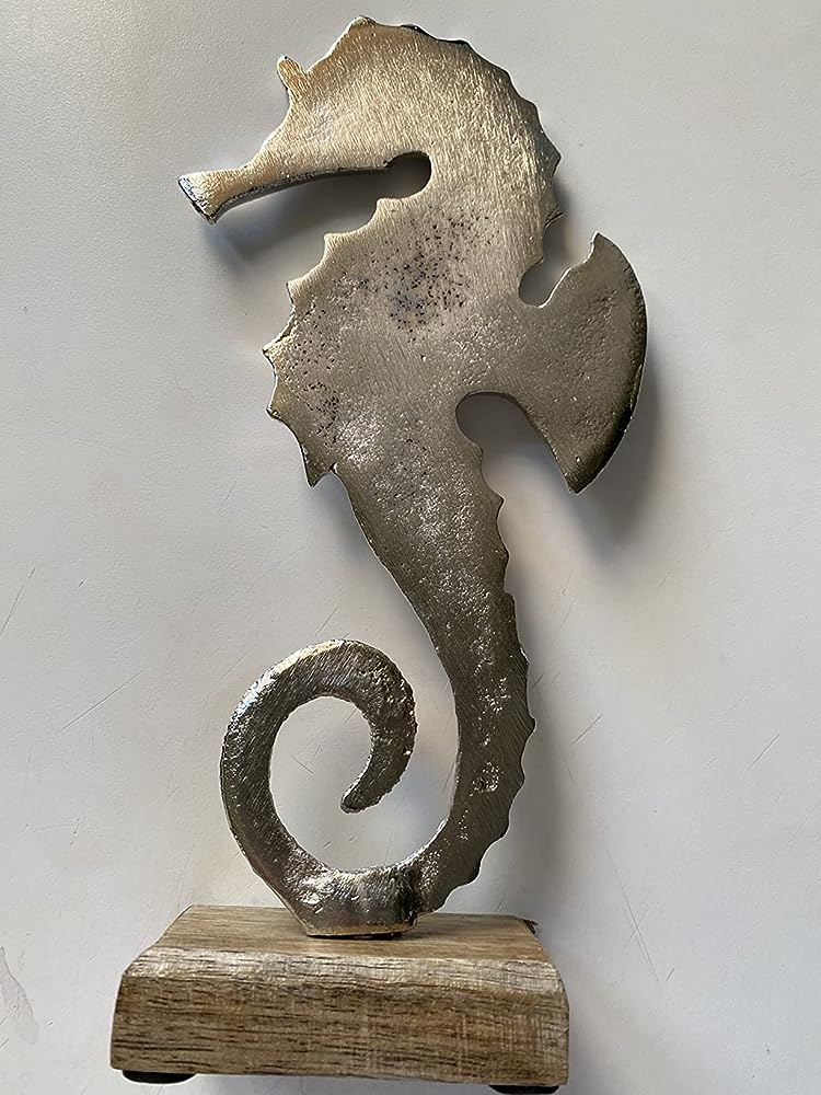 - Das Seepferdchen ist 23 cm groß, 10 cm breit und am Holzsockel 4,5 cm tief.