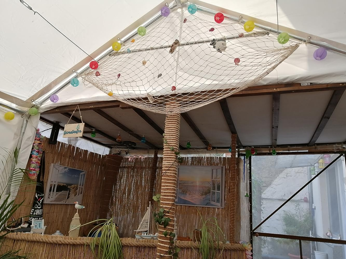Dieses Fischernetz sorgt für Gemütlichkeit, da es sehr schön aussieht und mit ein paar Muscheln dekoriert ist. Ich habe es zusätzlich noch mit einem Fisch und ein paar selbstgesammelten Muscheln vom letzten Nordseeurlaub vor 2 Jahren verschönert und mit einer kleinen Lichterkette dekoriert. Also ihr könnt es ruhig kaufen, da es wie beschrieben geliefert wurde und die Qualität passt 😉