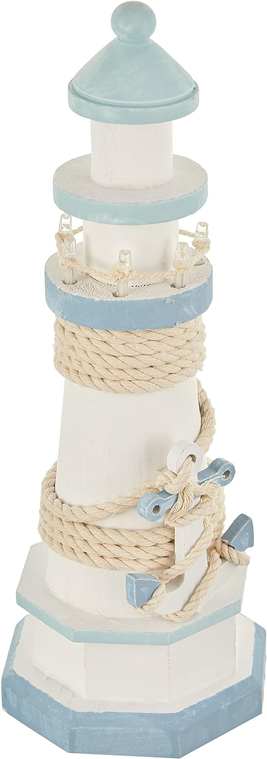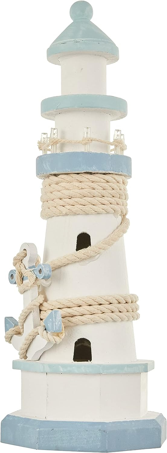 Dieser dekorative Holz-Leuchtturm komplettiert die maritime Dekoration des eigenen Zuhauses auf stilvolle Art und Weise. Durch die 8 batteriebetriebenen LEDs erscheint der Leuchtturm nicht nur realistsicher, sondern sorgt mit seinem warmweißen Licht auch für eine angenehme Wohlfühl-Atmosphäre.