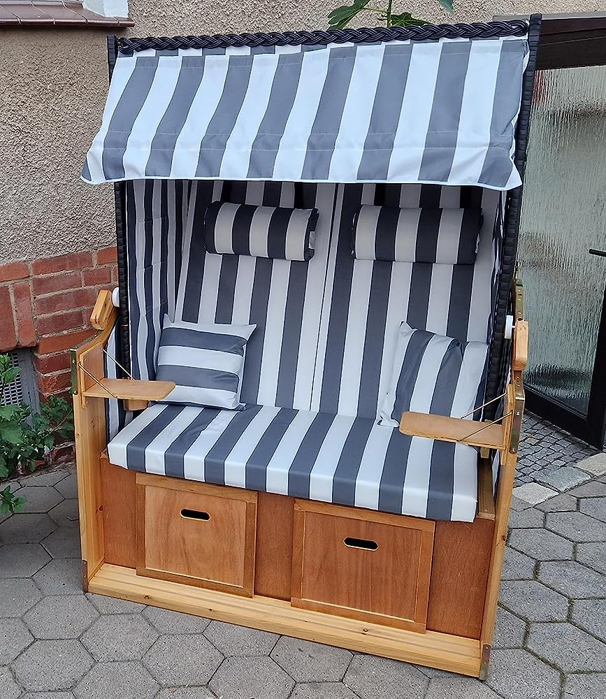 - Langlebiges Material: Das Untergestell des Strandkorbs besteht aus verzinktem Metall und das Kunststoffgeflecht in Rattan-Optik aus strapazierfähigem Polyethylen.