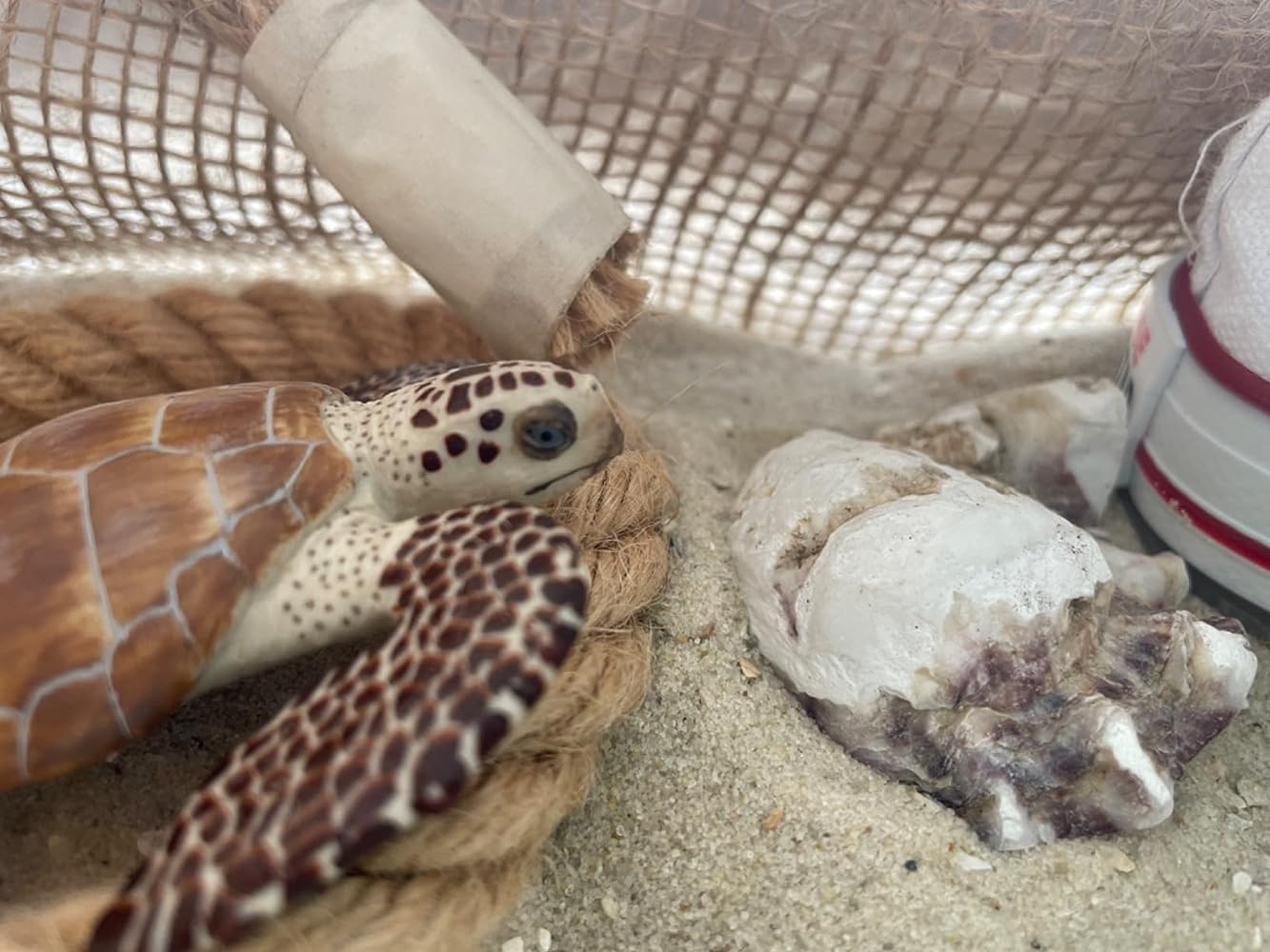Sehr schöne kleine Schildkröte. Sieht realistisch aus, gut verarbeitet. Top Preis-Leistungsverhältnis. Wurde hier als Geschenkdeko verwendet.