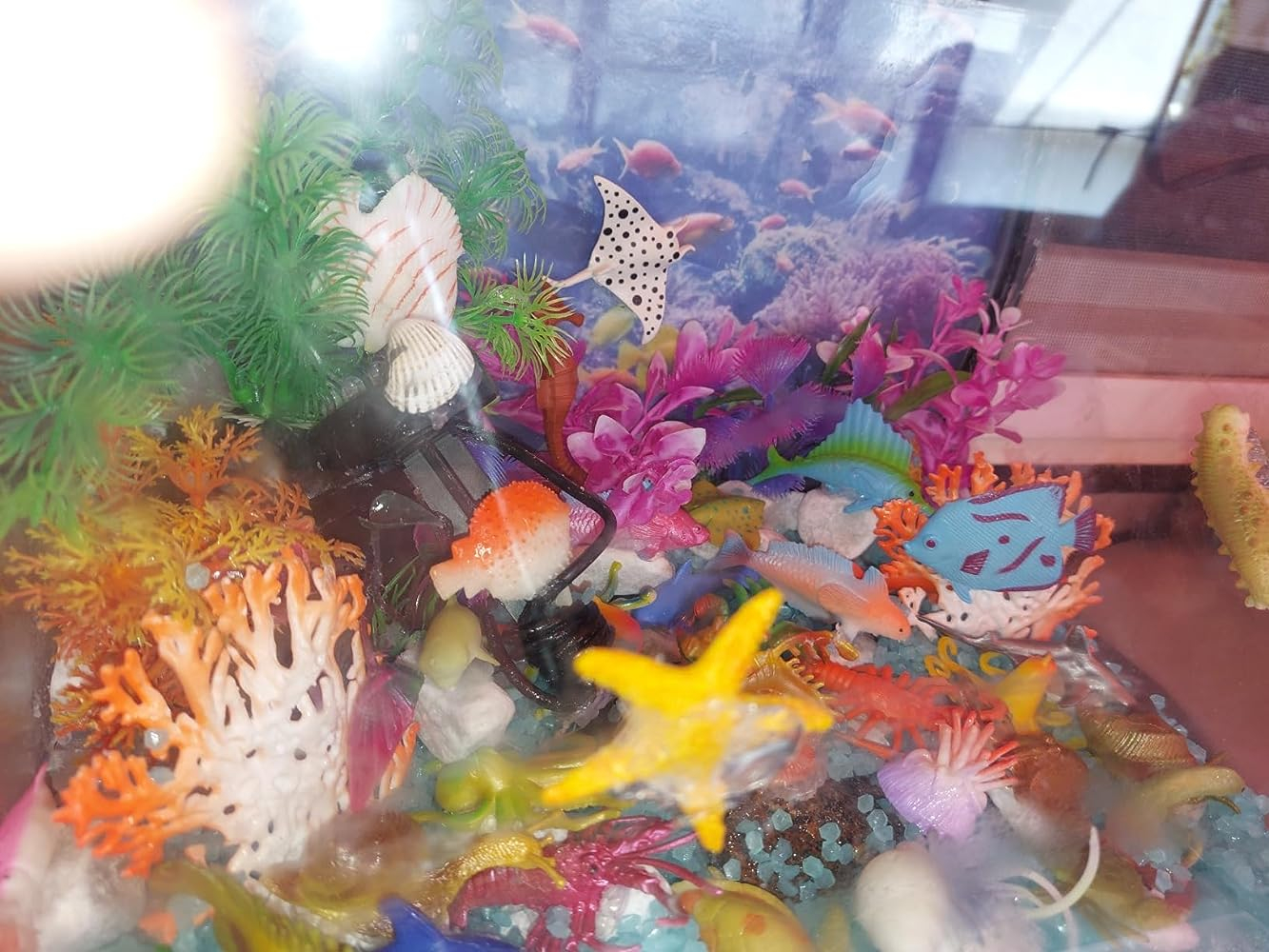 Also ich habe mir dieses Set geholt was sehr schön anzusehen ist. Leider schwimmt nicht ein Fisch. Alle fallen sofort nach unten.Was das mit Aquariumfischen zu hat möchte ich sehr gerne wissen. Es taug5 etwas zum Spielen für Kinder im Sand. Habe die Fiscge alle auf kleine Steine mit Acryl befestigt das ich wenigstens etwas sehe und im Wasser habe. Würde es weder weiterempfehlen noch es erneut kaufen. Da ich alles im Aquarium mit dem Silikon verbaut hab muss ich mir im nächsten Sommer ein neues Aquarium für den Balkon kaufen was mich wieder Geld kostet.Also Hände weg von diesen Dreck !!!!!!!!Am liebsten würde ich minus 100 Sterne vergeben. Im Herbst fliegt nun alles ausser der Pumpe weg.