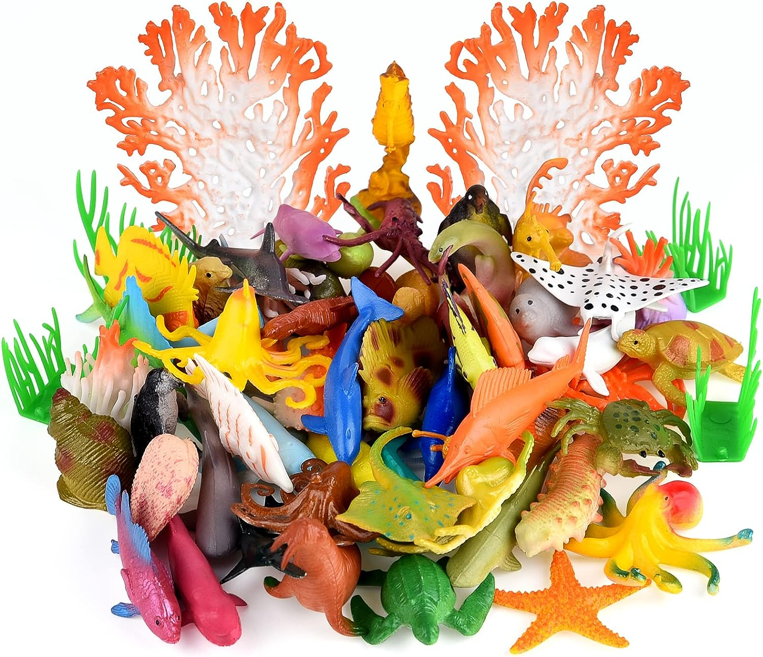 Mini-Kunststoff-Tierspielzeug, Meerestierfiguren Spielzeug, Meerestiere Tierspielzeug Tropische Fische Tiere Cupcake Topper für Geburtstagsfeier Dekorationen