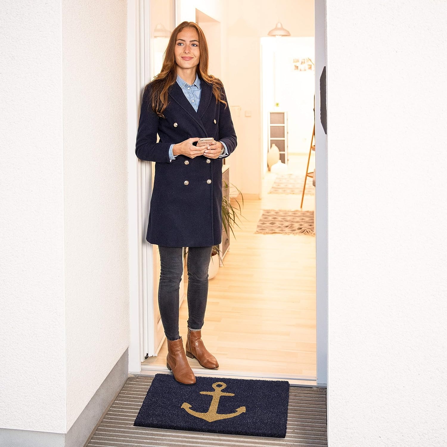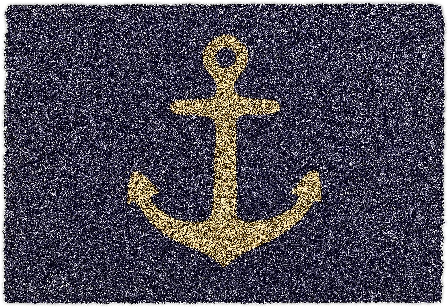 Relaxdays Fußmatte Kokos, 40×60 cm, Kokosmatte mit Anker-Motiv, Rutschfester Schuhabtreter, maritim, innen & außen, blau, 1