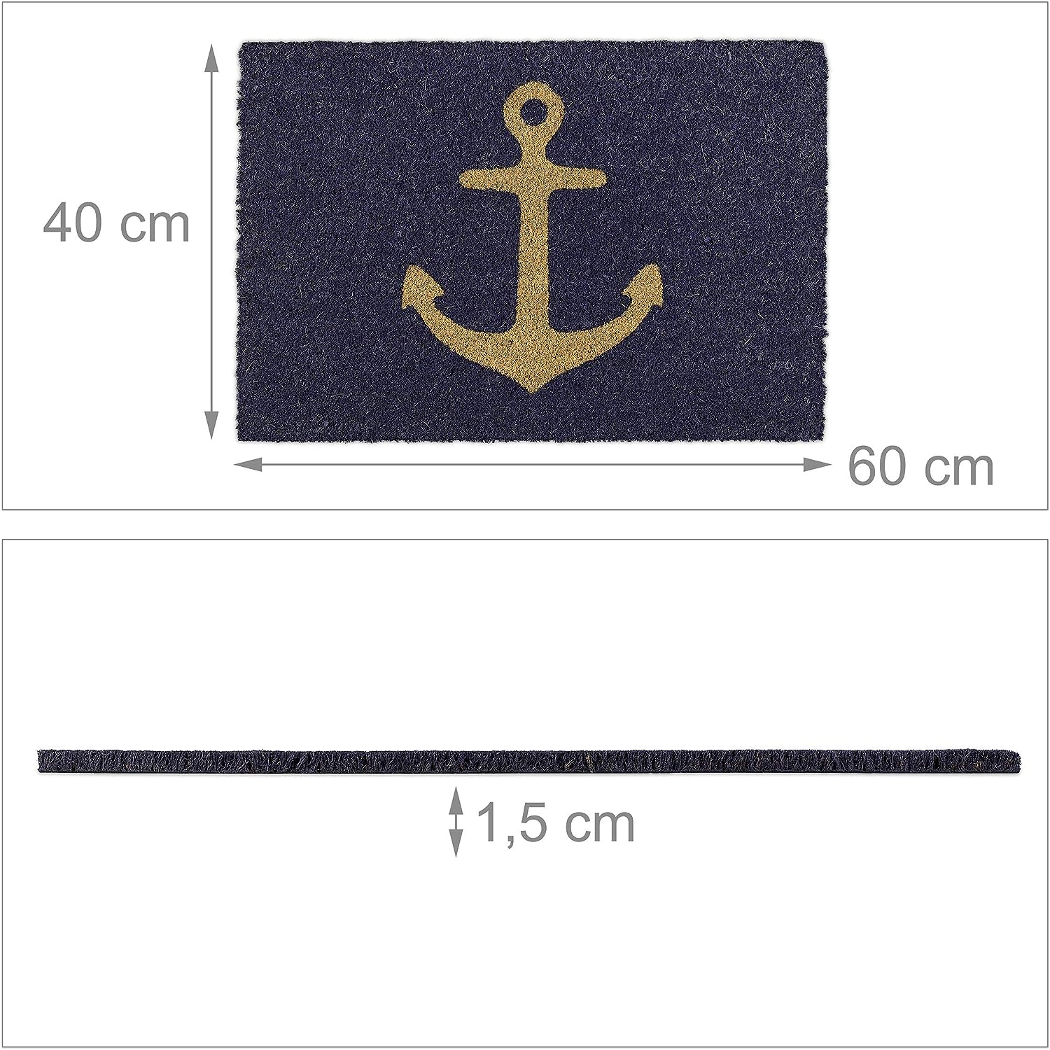 3 reviews for Relaxdays Fußmatte Kokos, 40×60 cm, Kokosmatte mit Anker-Motiv, Rutschfester Schuhabtreter, maritim, innen & außen, blau, 1