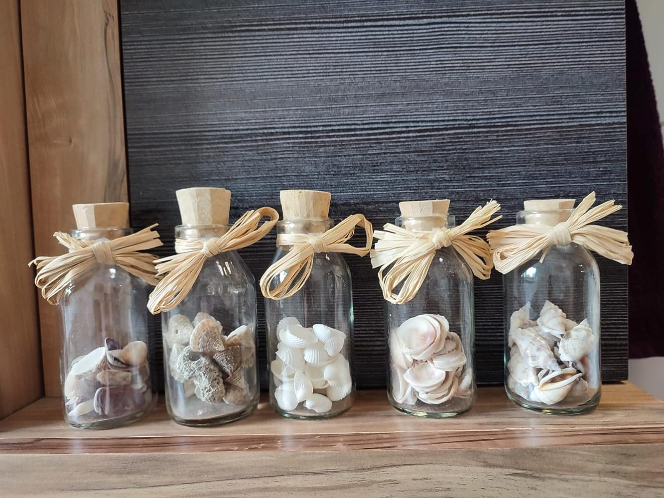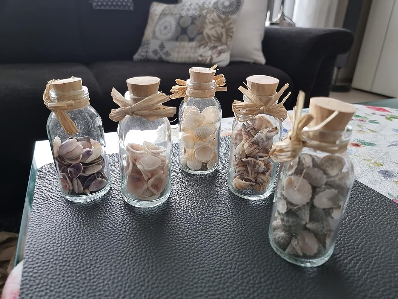 • 5er Set Kleine Glas Flaschen mit echten Muscheln aus dem Meer – Natürlich schöne Zierde für Innen