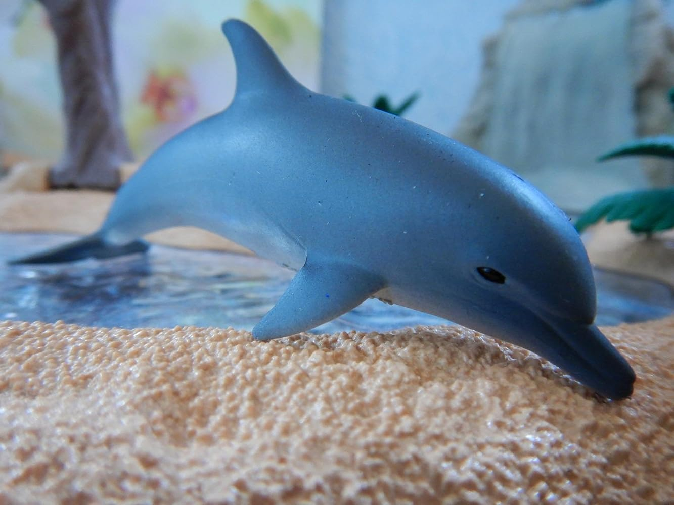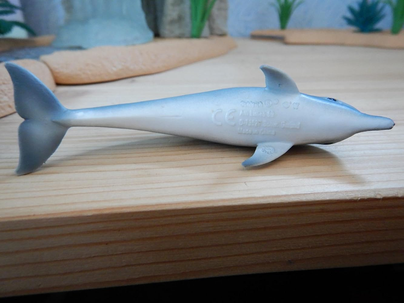 Mein Kind liebt Schleichtiere und erst recht mit ihnen die Zeit in der Badewanne zu verbringen. Da sind natürlich Meerestiere mehr als geeignet. Nach einigen Haien und einem Wal folgte nun auch der Delfin.Die Bemalung und Verarbeitung ist in Ordnung. Womit ich ein wenig Sorge habe, ist die weiße Bauchfarbe. Diese fühlt sich genauso an wie bei unserem Schleich-Blauwal und da hat sie sich von selbst nach kurzer Zeit abgelöst. Da dieser Delfin aber ein weißes Grundmodell hat ist das farblich aber nicht ganz so schlimm. Dennoch bin ich gespannt, ob sich die Farbe auch hier von selbst ablöst – bis jetzt noch nicht passiert.⭐Fazit:Ein niedlicher Delfin der gern zusammen mit anderen Meeresbewohnern in unserer Badewanne Tauchgänge absolviert.