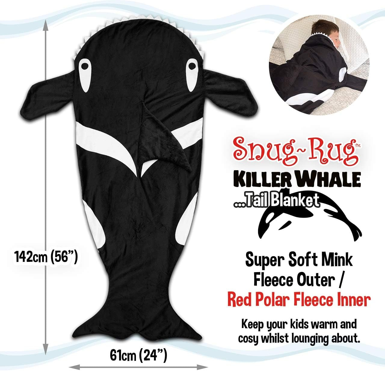 3 reviews for Snug Rug Killer Whale Tail Black & White Super Soft Qualität Nerz-Fleecedecke – Bis zu 1,5 m hoch, Polyester, Schwarz und
