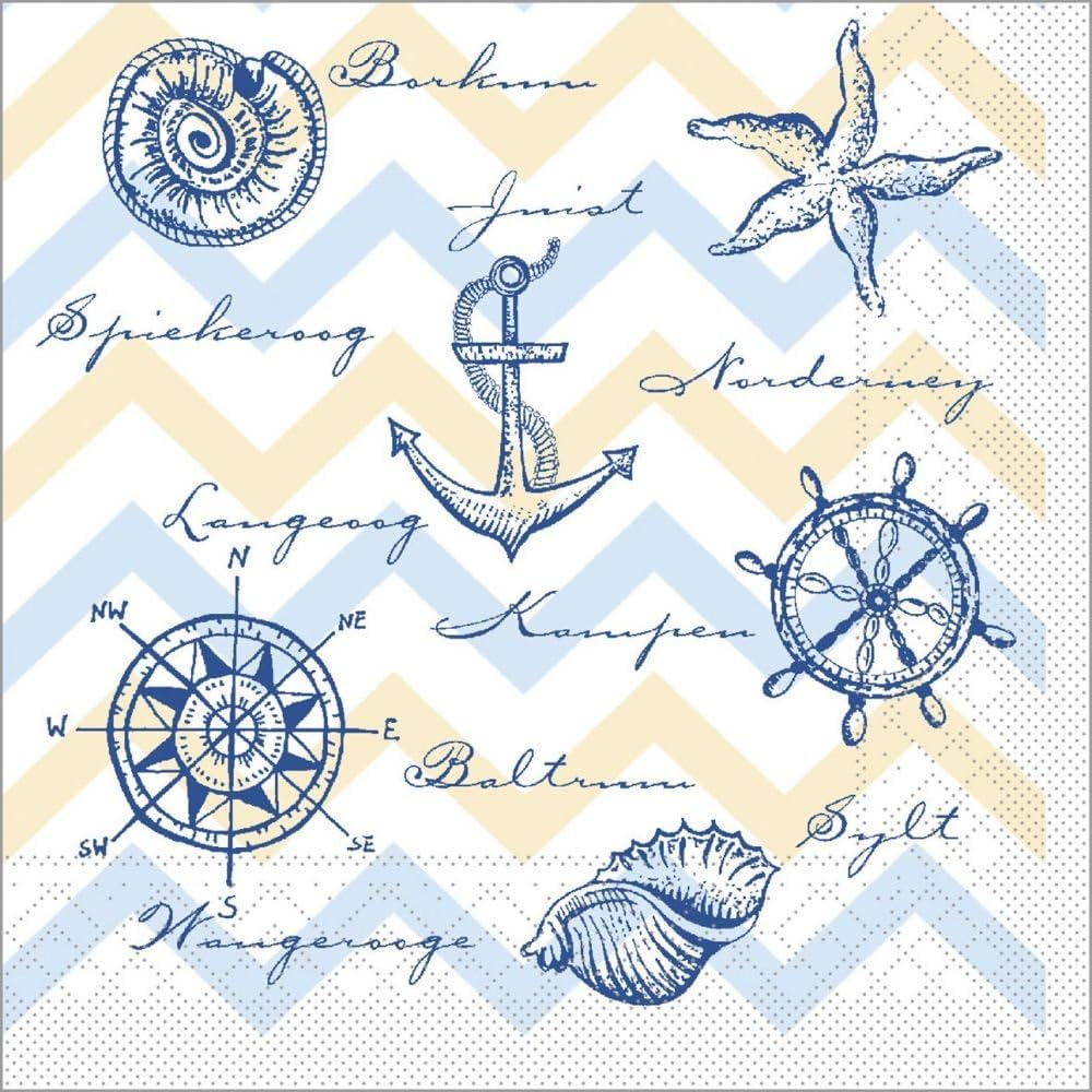 20 Servietten Seesterne an Anker/Muscheln/See/Meer/Maritim 33x33cm