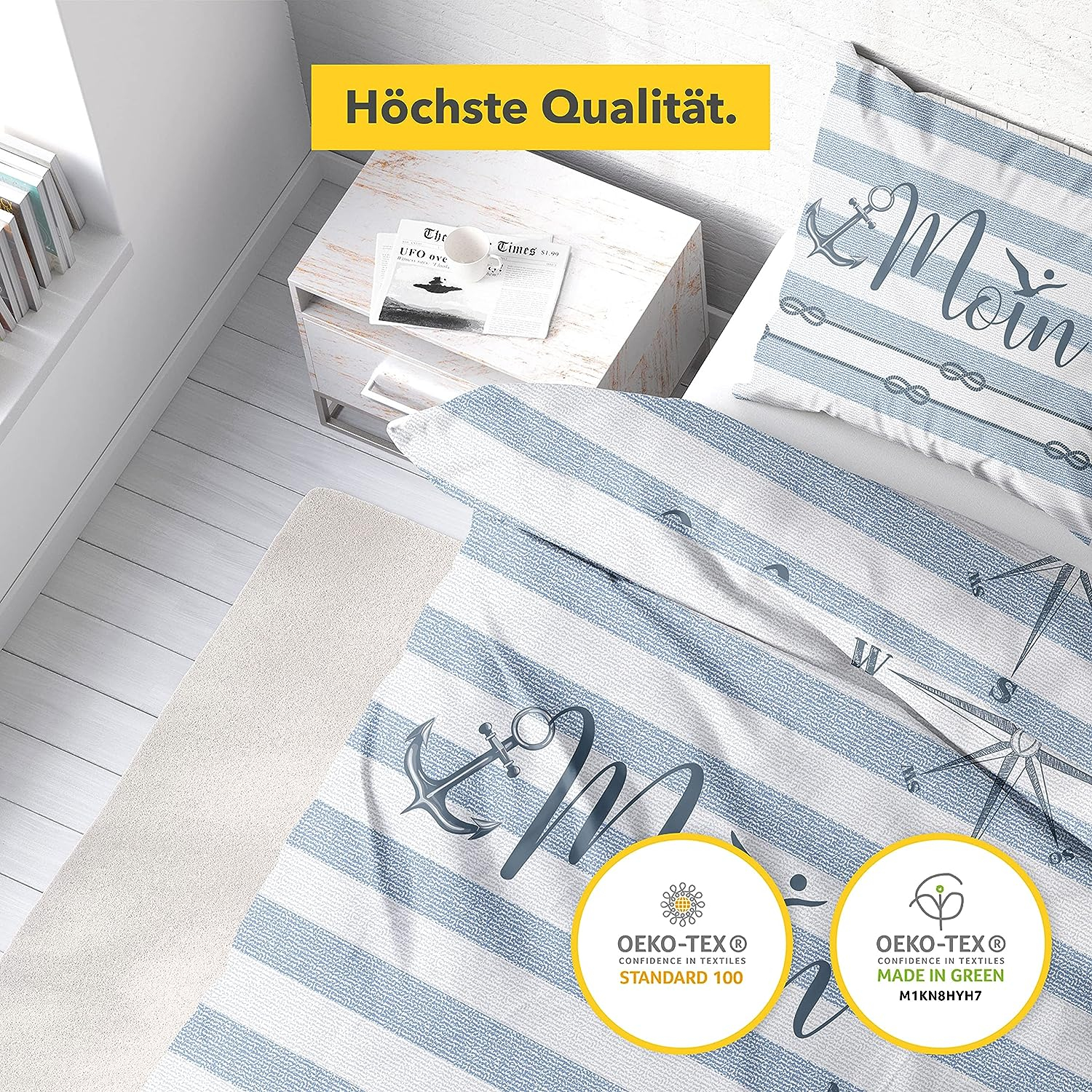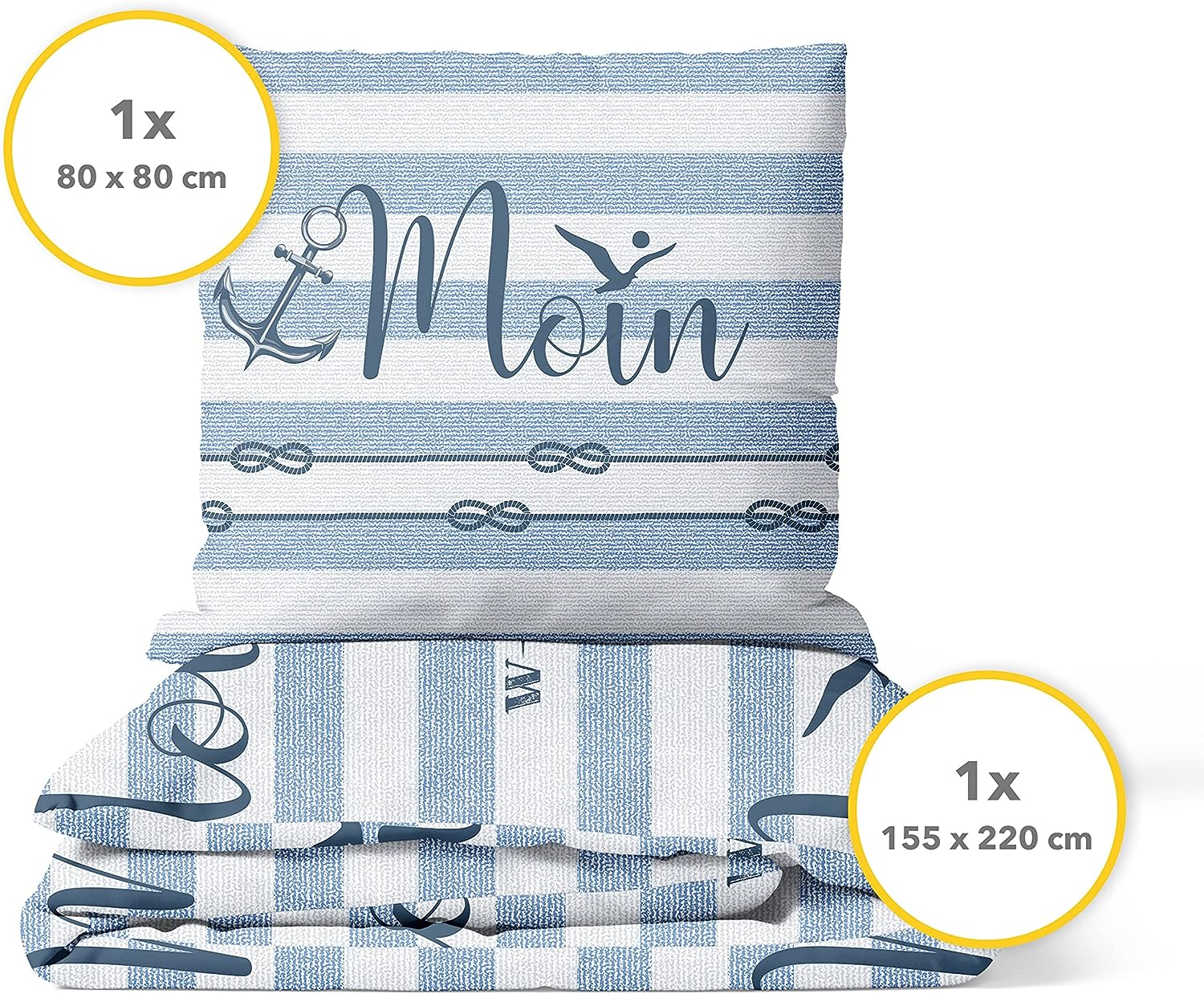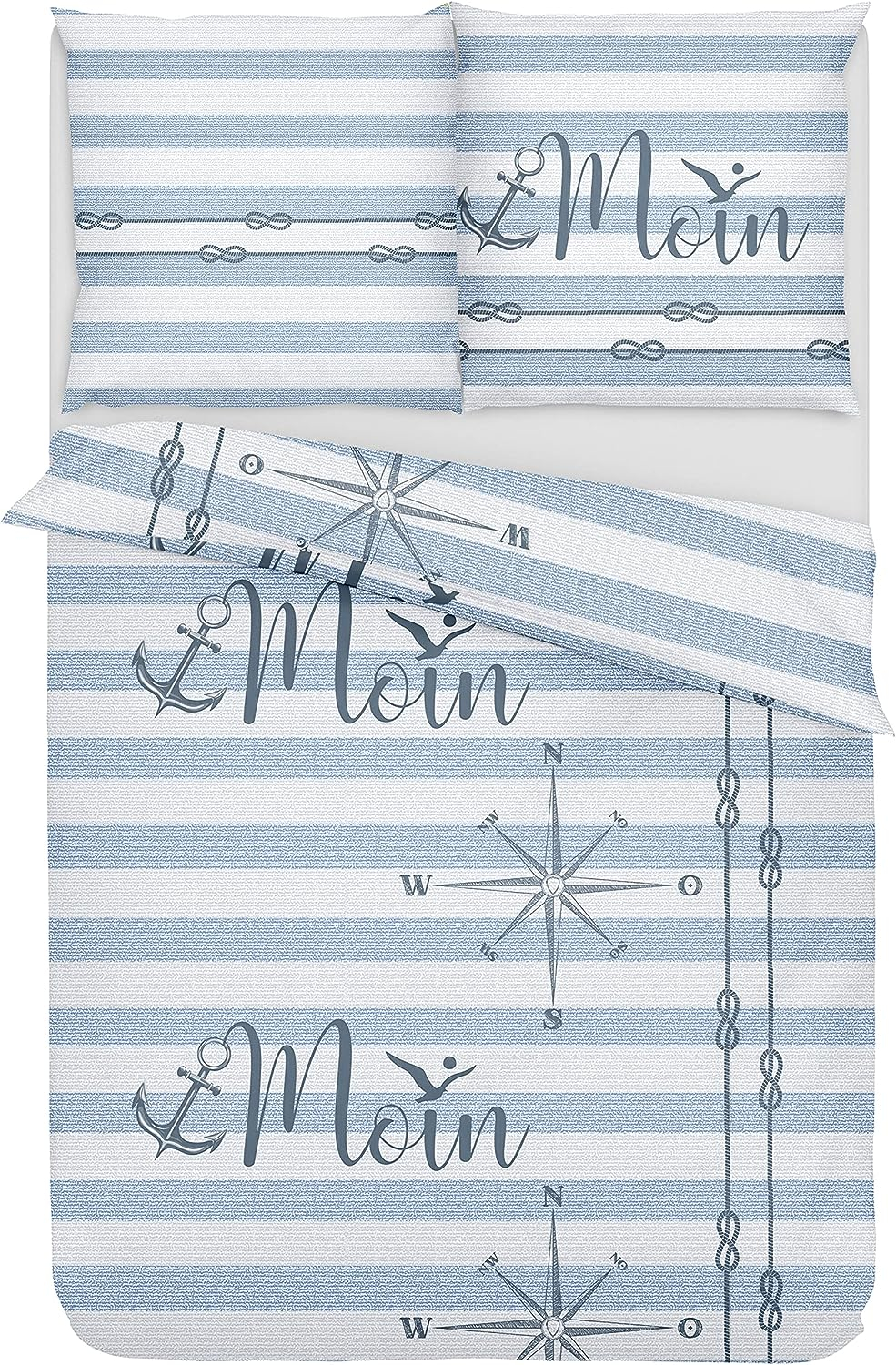 - MOIN MARINE: Durch das nautische Design wird Ihr Schlafzimmer zu einer wahren Wohlfühl-Oase & die besonders weiche Renforcé Bettwäsche Oberfläche ermöglicht erholsamen Schlaf