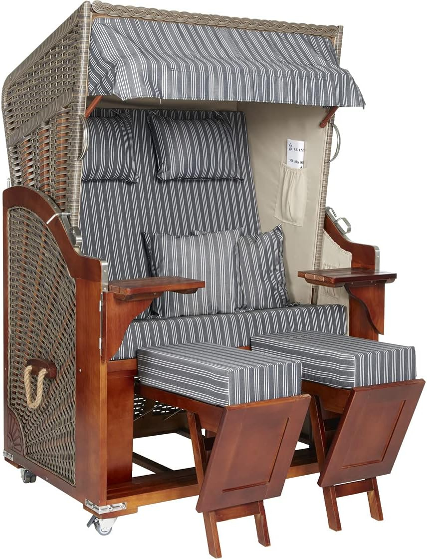Der Strandkorb ist sehr schön, die Abdeckhaube wirkt hochwertig und passt gut. Highlight: Die dicken Wadenkissen sind MEGA-bequem !