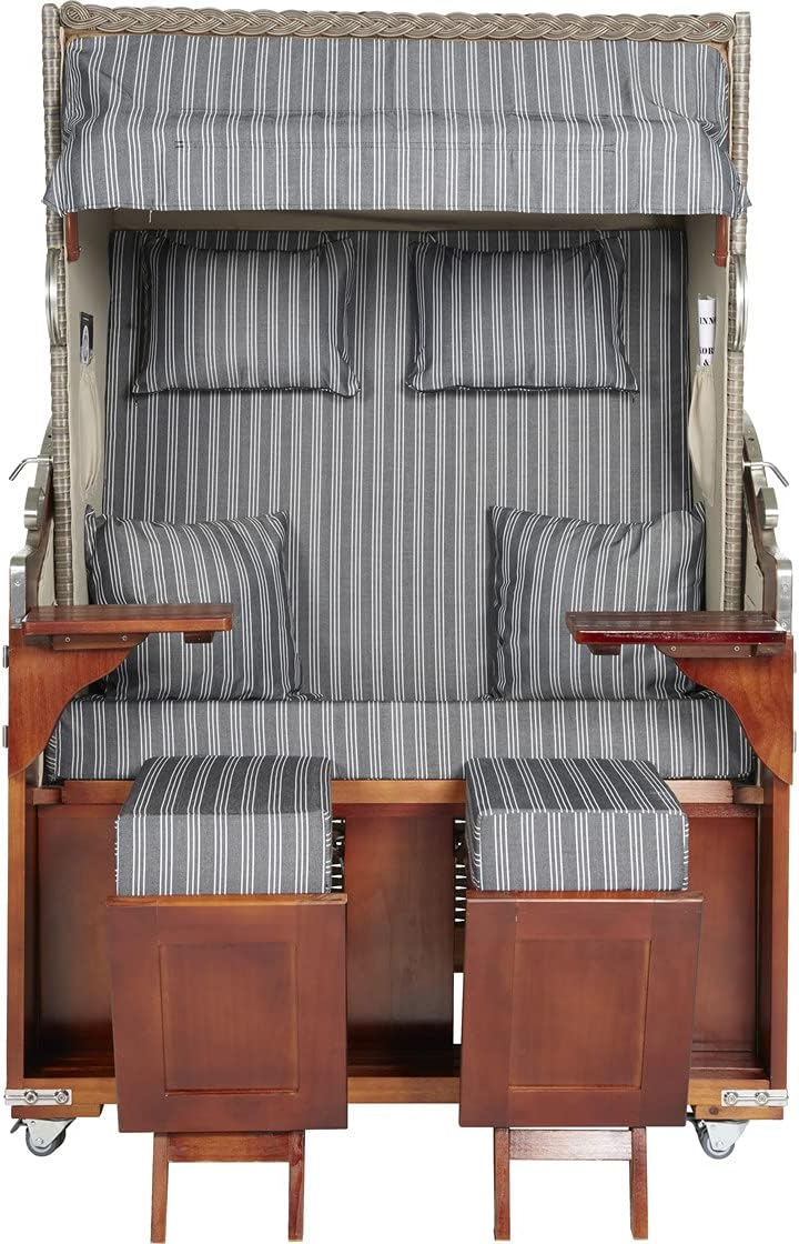 5 reviews for Webavita – Strandkorb Mallorca aus Pinienholz | 2 Sitzer | Montiert |Geflecht: Grau, Bezug: Anthrazit Gestreift | Halblieger |