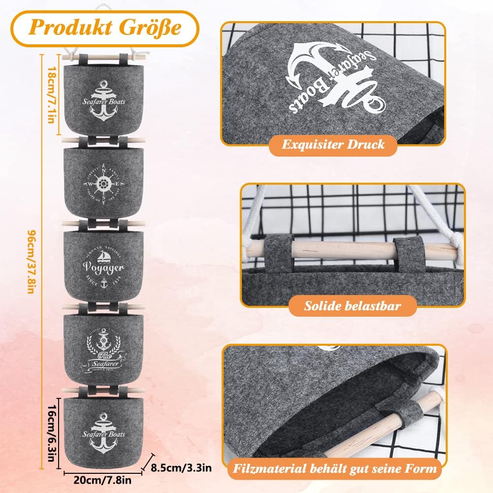 - ★ 5 Taschen Großes Fassungsvermögen: Größe einzlner Tasche: ca. 20 x 8.5 x 16 cm (LxBxH). Die 5 Taschen zum Aufhängen an der Wand können frei kombiniert montiert werden, genug, um Ihre täglichen Kleinigkeiten zu platzieren, mehrschichtige Verwaltung, einfach zu sortieren und zu lagern, bequem zugänglich.