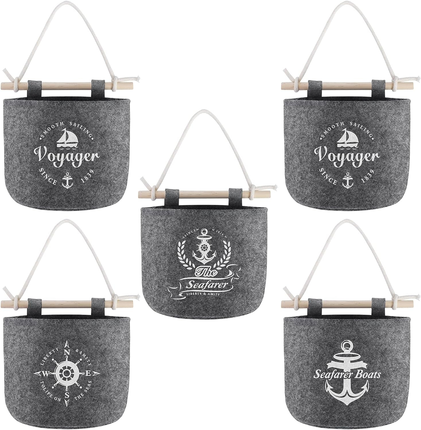 ZPONEED 5er Set Filz Hängende Tasche Aufbewahrungstasche, Hängeorganizer Wand Organizer, Wandtasche für Schlafzimmer Büro